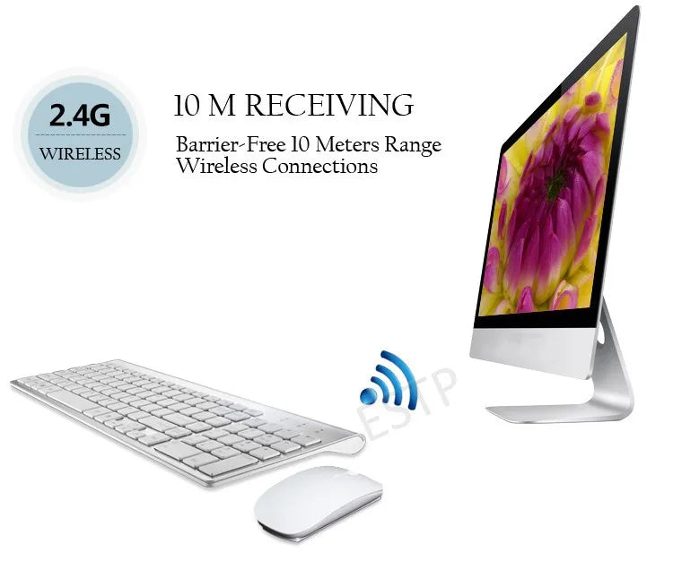 • Connexion 2.4GHz: avec un nano récepteur USB (inclus), la distance de connexion valide atteint 10m de chaque connecteur. Le signal sans fil 2.4GHz est absolument sûr sans aucun rayonnement nocif.
